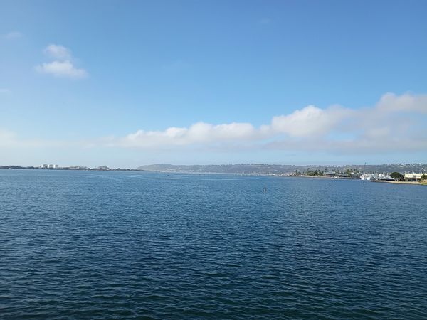 Photo: Looking across the bay from Harbor Island to North Island Naval Air Station and beyond to Cabrillo National Monument on Point Loma